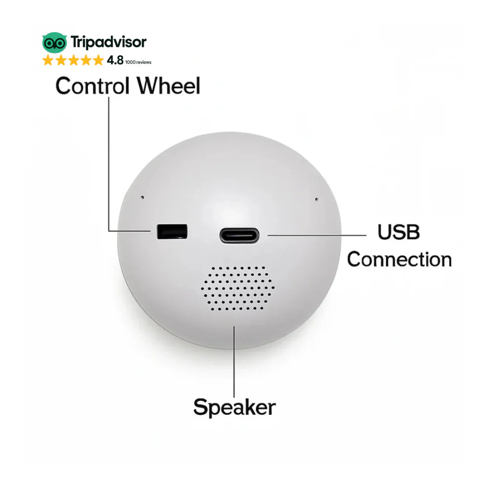 Lightweight and rechargeable, MemOrb travels wherever you go. Whether at home, on a trip, or visiting friends, it transforms any moment into a personal cinematic experience.